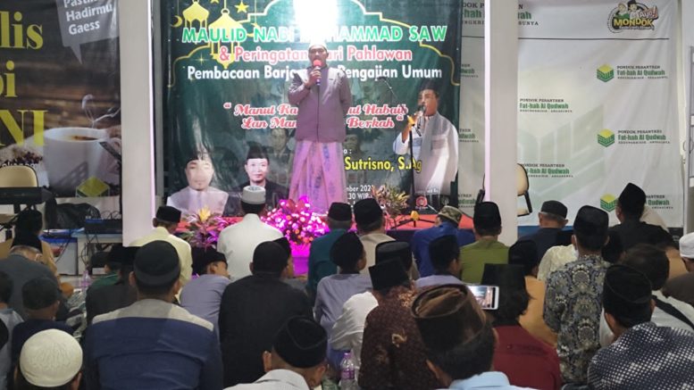 HARJAMUKTI – Dalam rangka memperingati Maulid Nabi Muhammad SAW sekaligus momentum Hari Pahlawan, Pondok Pesantren Fat-hah Al Qudwah Harjamukti Kota Cirebon bersama warga sekitar menggelar pengajian umum dan pembacaan barjanji, Kamis (12/11) malam. Semangat Maulid Nabi dan Hari Pahlawan menjadi pelecut Ponpes bersama warga sekitar untuk terus merawat dan menjaga serta meningkatkan kualitas keislaman.