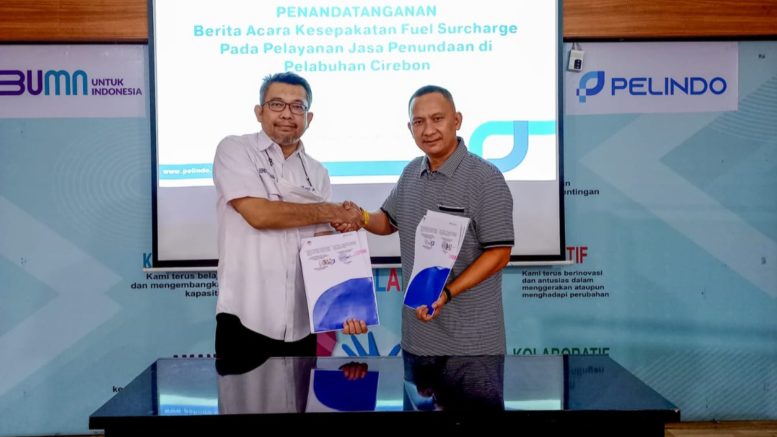CIREBON – Bertempat di Kantor PT Pelabuhan Indonesia (Persero) Regional 2 Cirebon, telah dilaksanakan seremonial penandatanganan Berita Acara Kesepakatan Penerapan Fuel Surcharge antara PT Pelabuhan Indonesia (Persero) Regional 2 Cirebon, DPC INSA (Indonesian National Shipowners Association) Cirebon, dan DPW ISAA (Indonesian Shipping Agentcy Association), Senin (29/8).